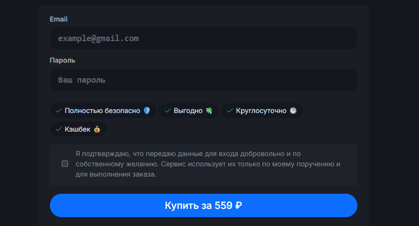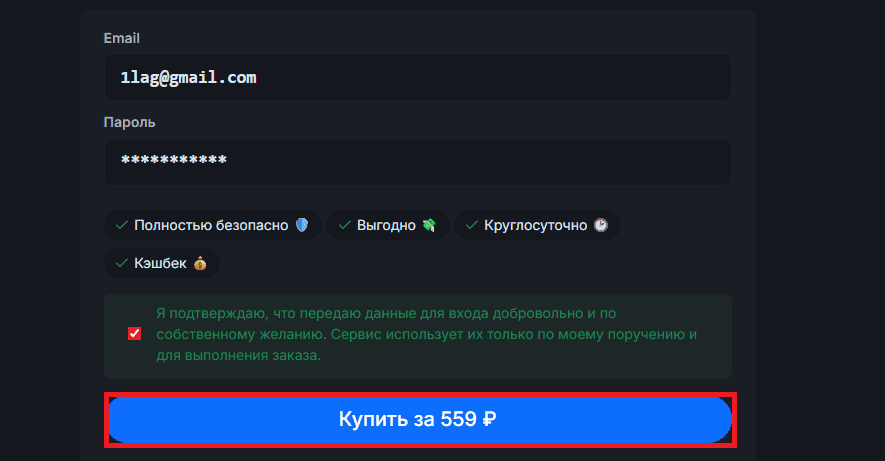 Шаг 5. После ввода всех данных ещё раз проверьте их правильность и нажмите кнопку «Купить». Ошибки в email или пароле могут привести к задержке или отмене заказа.