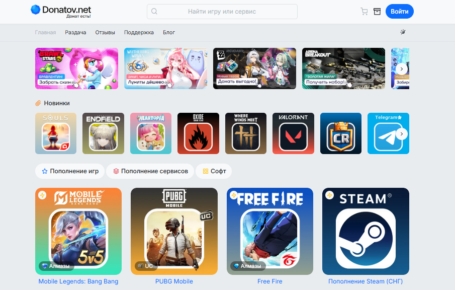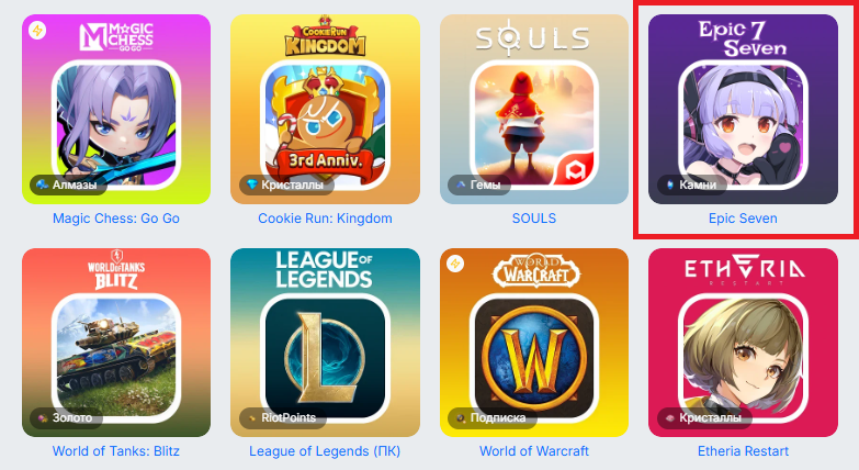 Самый простой способ задонатить в Epic Seven — воспользоваться сервисом Donatov.net. Это удобная и надежная платформа, которая позволяет быстро пополнить внутриигровую валюту, приобрести наборы, боевые пропуски и многие другие донат-пакеты без лишних сложностей.