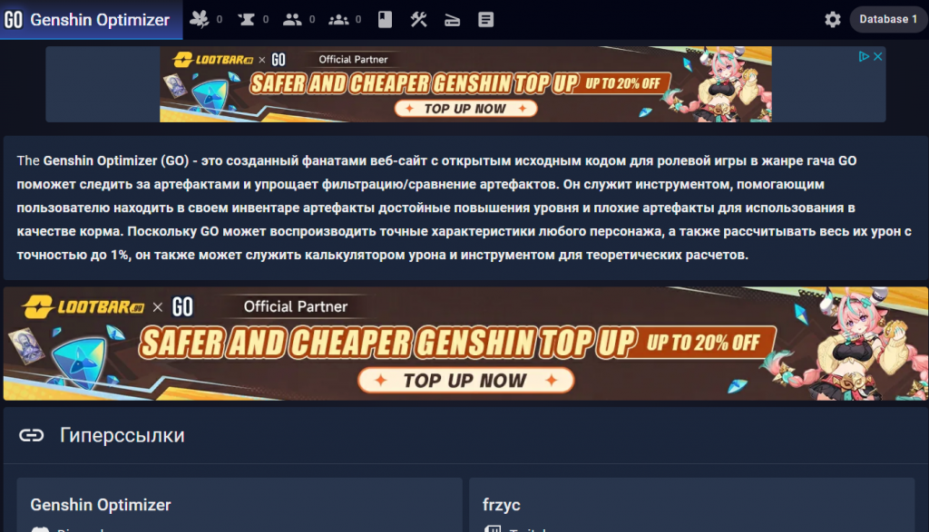 Genshin Optimizer — комплексный инструмент для расчёта билдов и сравнения экипировки.