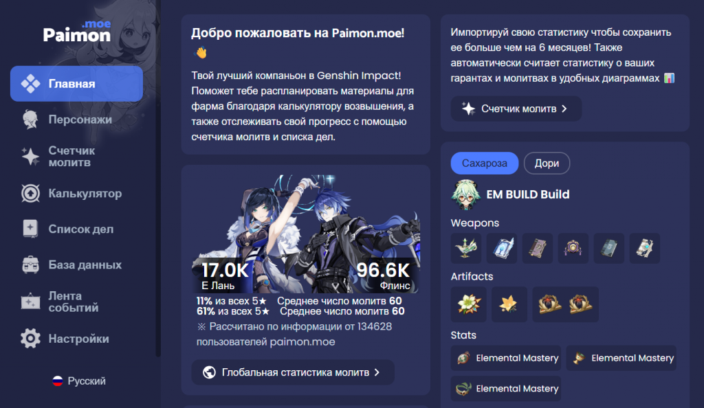 Paimon.moe — трекер ресурсов и событий с поддержкой синхронизации через UID.