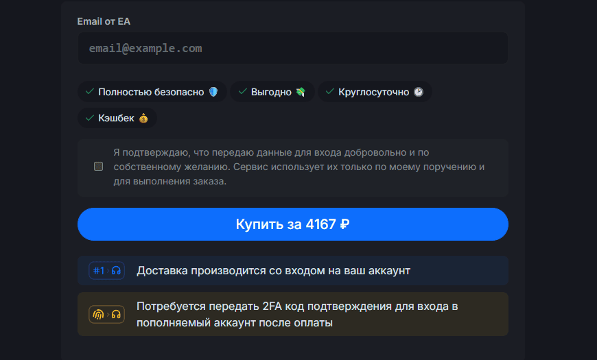 После того как аккаунт будет связан с EA, вы сможете без проблем оформлять покупку доната и получать кристаллы напрямую на свой игровой профиль.